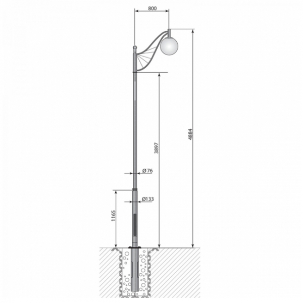 Декоративная опора Ангел-2-5,2 предназначены для освещения парков, скверов, набережных, аллей, коттеджных поселков, прилегающих территорий. Установка производится на железобетонные фундаменты, имеющие в своем составе закладной элемент.