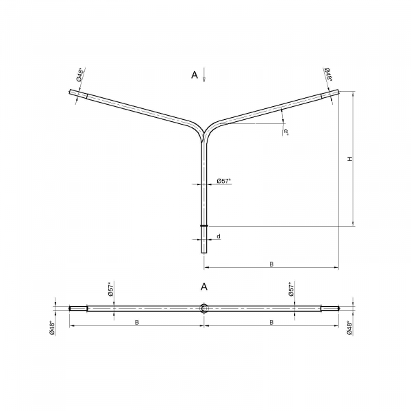 Двухрожковые кронштейны К3-2,5-1,5-1-1 предназначены для крепления светильника на трубчатой опоре освещения.